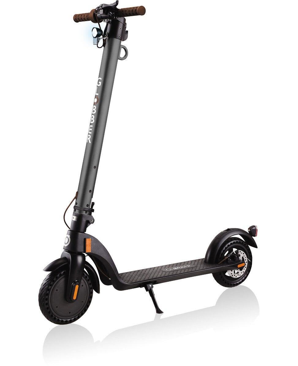 De One K E-Motion 23 Elektrische step van het merk Globber is een hoogwaardige elektrische step voor een leeftijd vanaf 14 jaar. De step heeft een extra lang, breed en robuust dek met zacht, premium TPR griptape en biedt erg soepele, veilige en lekvrije ritten aan dankzij een gaspedaal op de T-balk voor eenvoudige snelheidsregeling, hoogwaardige rubberen banden met kuiltjes en een ISO-licht en bel voor extra veiligheid. De step heeft een krachtige borstelloze naafmotor geïntegreerd in de Aluminium voorvelg die een vermogen levert van 350 W. De step is hierdoor in drie verschillende snelheidsmodes te zetten, namelijk 0-10 km/h, 0-15 km/h en 0-25 km/h met een totaal bereik van 15-20 km. De step heeft verder een dubbel remsysteem bestaande uit E-ABS en mechanische schijfrem die eenvoudig geactiveerd kunnen worden door het indrukken van de rem aan het stuur. Als laatste is de step opvouwbaar door middel van een veilige en gemakkelijke inklapbare hendel.